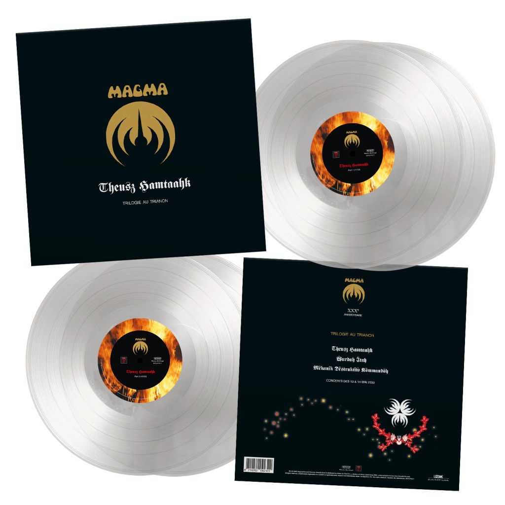 La TRILOGIE AU TRIANON de Theusz Hamtaahk est disponible pour la première fois en vinyle ; 4LP, limité et numéroté à 1000 exemplaires sur vinyle cristallin. Il est emballé dans une pochette robuste de 10 mm, contient un livret de 4 pages et 4 poch...